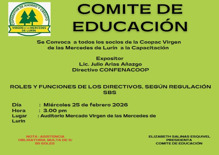 Para acceder a nuestros productos y servicios es IMPRESCINDIBLE ser socio de la cooperativa, se deja constancia que esta Cooperativa no OPERA ni CAPTA recursos del público y los depósitos de los asociados no están cubiertos por el fondo de seguros de depósitos, según ART. 8 del Reglamento de Cooperativas de Ahorro y Crédito – Resolución SBS No. 0540-99. Estamos reglamentados por la Superintendencia de Banca, Seguros y AFP, y supervisados por la Federación Nacional de Cooperativas de Ahorro y Crédito.